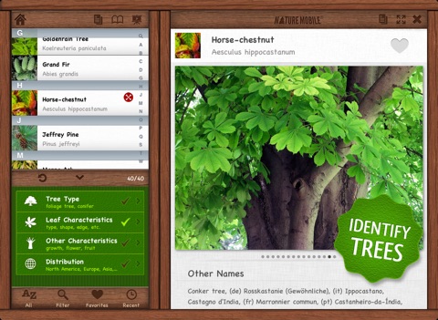 NATURE MOBILE introduces - Trees PRO HD - an ideal guide to the most common North American and European trees on your iPhone and iPad. With the built-in quiz you will also learn quickly to distinguish between different species.