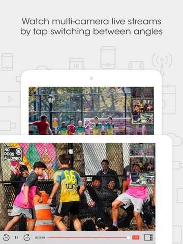 ● Watch multicamera live streams by tap switching between angles