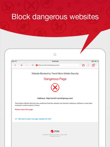 Save time, data, and reduce worry by using Trend Micro to optimize your web browsing experience. Undesired websites, annoying invasions of privacy, and dangers to your kids, are all stopped dead in their tracks.