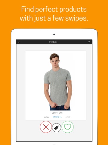 Swipe right to like and keep the product you see or swipe left to dislike. If you want to purchase right away just touch "TrendBox Tag" to be redirected to website that product is sold.