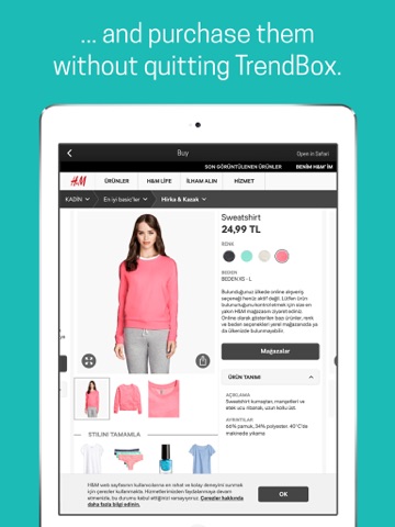 TrendBox is free. It does not need your personal or credit card info. If you want to buy a product you like just press TrendBox Tag to be redirected to related website and complete your purchase.