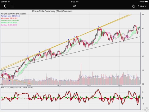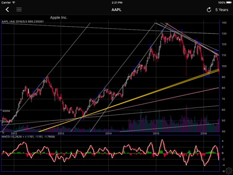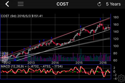 The App lets user select any stock by entering symbol or company name, and shows near real time quotes, and draws legible candle stick charts with trendlines overlay. Charts can be viewed in many timeframes - from 3 months to 10 years or maximum lifespan of the stock. Trendline overlays are designed to help you find true trendlines, not the final answer. Some possible trendline candidates may not match your ideal shape, use your intuition to make the best trading decision.