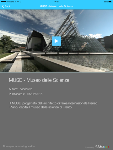 Una video-guida interattiva di Trento … ovvero la città di Trento raccontata in 10 video interattivi, che mostrano con una tecnologia innovativa palazzi e musei, e permettono di conoscere ‘cosa c’è dietro’ le immagini del video. Potrai toccare ciò che vedi nel video e scoprire storie, curiosità o semplicemente gli orari di apertura di palazzi e musei.