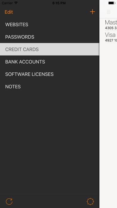 • Standard categories like Bank Accounts, Credit Cards, Websites, Software Licenses, Passwords, Notes