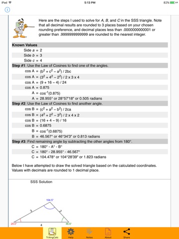 Plus, unlike other triangle calculators, this calculator will show its work by detailing each of the steps it took to solve the formulas for finding the missing values.