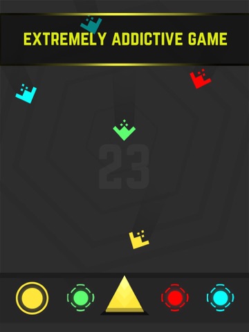 INCOMING TRIANGLES!! Tap the correct color of the incoming triangle to earn a point. WATCH OUT for color bombs! (Tap to destroy them).