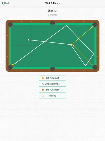 This app contains all 120 pool table diagrams of the current standard artistic pool shot program. Although the diagrams are drawn to scale for 9-foot tournament tables, shots can be completed on 7-foot tables with minor adjustments.