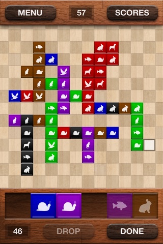 The game consists of 6 different colored tiles printed with the numbers 1 to 6. Your mission is to put lines (vertical or horizontal) on the board which consist either of the same color or the same number. An additional rule is that each color in a number line must be different and vice versa: Each number in a color line must be different. Therefore, it is not possible to put 2 tiles with the same color and number side by side, and the maximum length of a line is limited to 6.