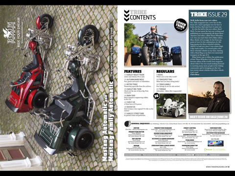 A seriously specialist magazine, Trike is just about to start its third year of publication and even we’re a bit stunned at the response there’s been to it! It seems that Trike is just what the UK needed - a magazine for and dedicated to all things three-wheeled!