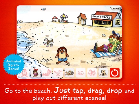 Play! Create a fun beach scene – enjoy watching Little Critter as he flies his kite, plays on the beach or in the water & orders a snack! Move & change the scenes to create a new adventure every time. There’s also a fun camp scene to create too!