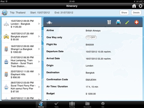Trip Manager is your personal travel manager. It stores information for your trip