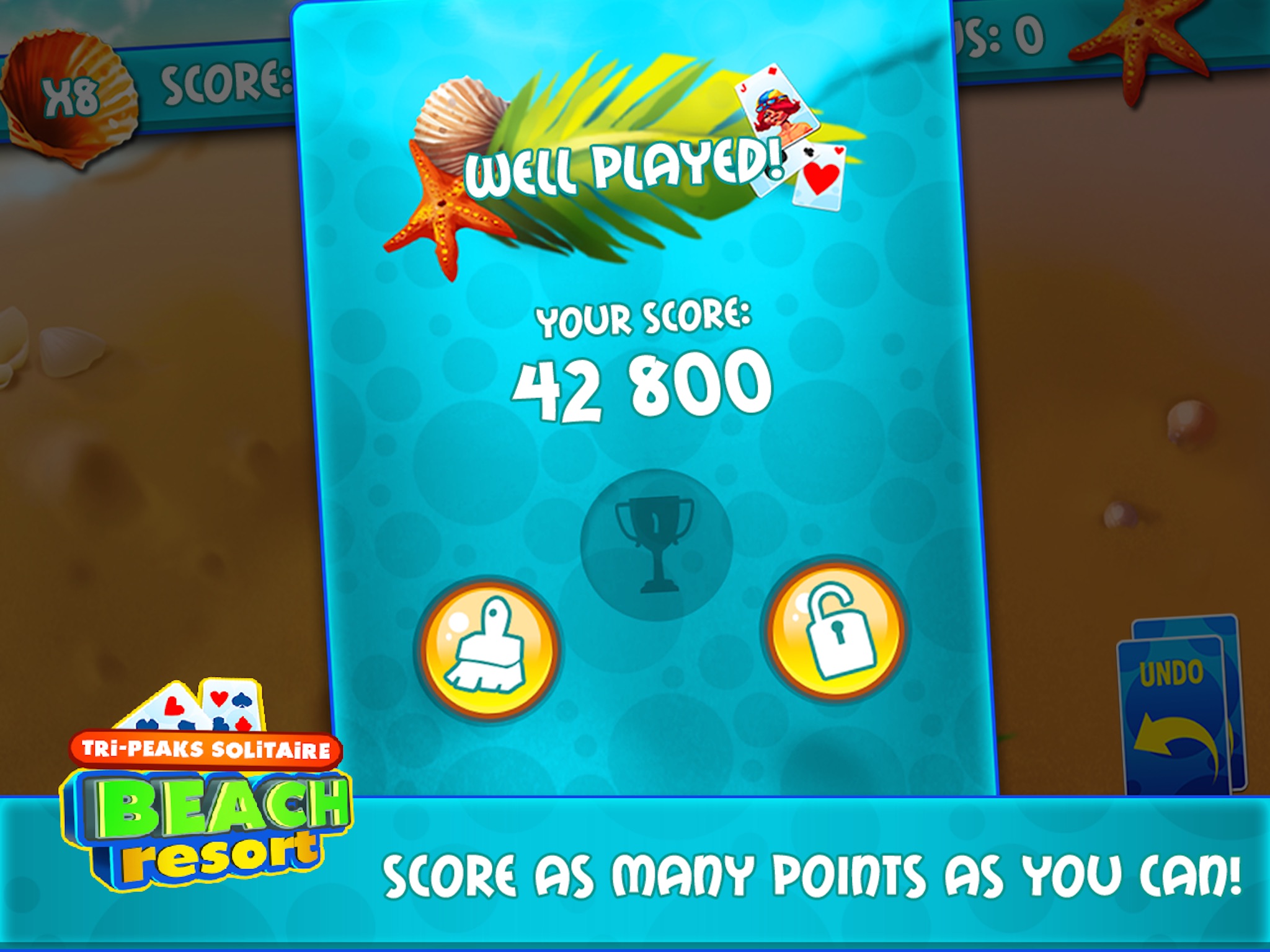 You can unlock 5 different layouts in Tripeaks Solitaire: Beach Resort that all have their own challenges. Unlock them all and let the fun begin!
