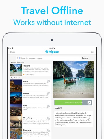 I love the principle of being able to sync a trip with the server. And I would like to love the app as well but it doesnt log in using my Facebook account. It keeps telling that I must allow Triposo in Facebook. I have done it but it still refuses to log and keeps telling the same message. Please fix it. I have an iPhone 5 with iOS 6.0.1. and Facebook app installed.