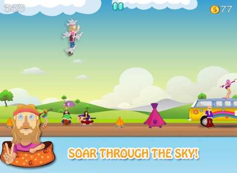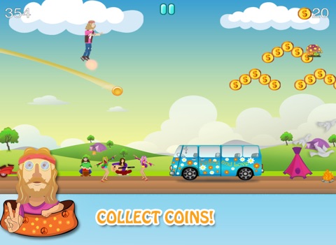 Fly through the air collecting as many coins as you can. Challenge your friends and see who can fly further, avoiding bombs and storm clouds. Mushrooms, peaceful doves, and balloons will make you very happy.