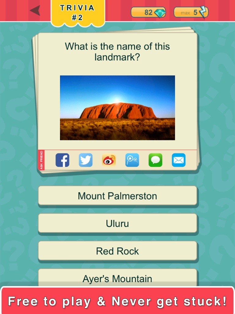 - Stuck on a question? You can always pass it for free! No in-app purchase necessary!