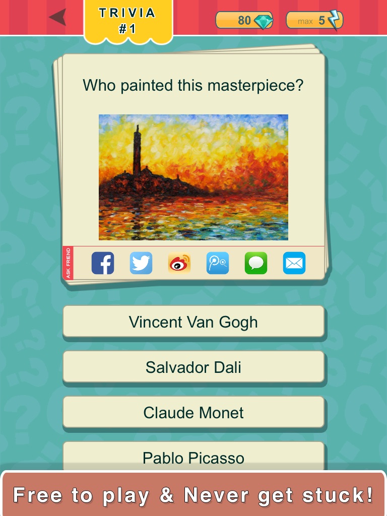 - Stuck on a question? You can always pass it for free! No in-app purchase necessary!