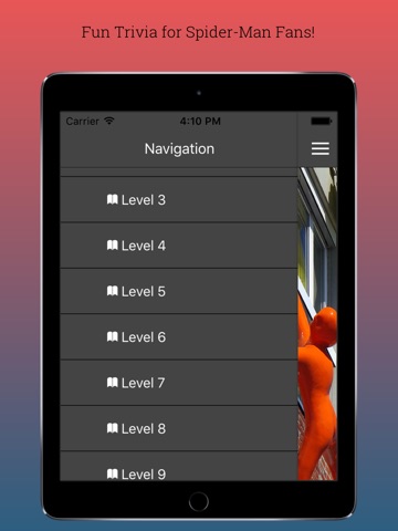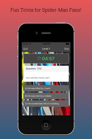 -With over 100+ questions and random difficulty levels, Trivia for Spider-Man Quiz is the latest trivia app on the store that brings up and tests your memory for the super loved Spider-Man movie and books.