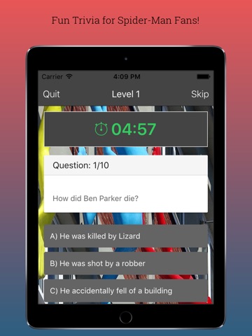 Trivia for Spider-Man is a fun Quiz made for fans.