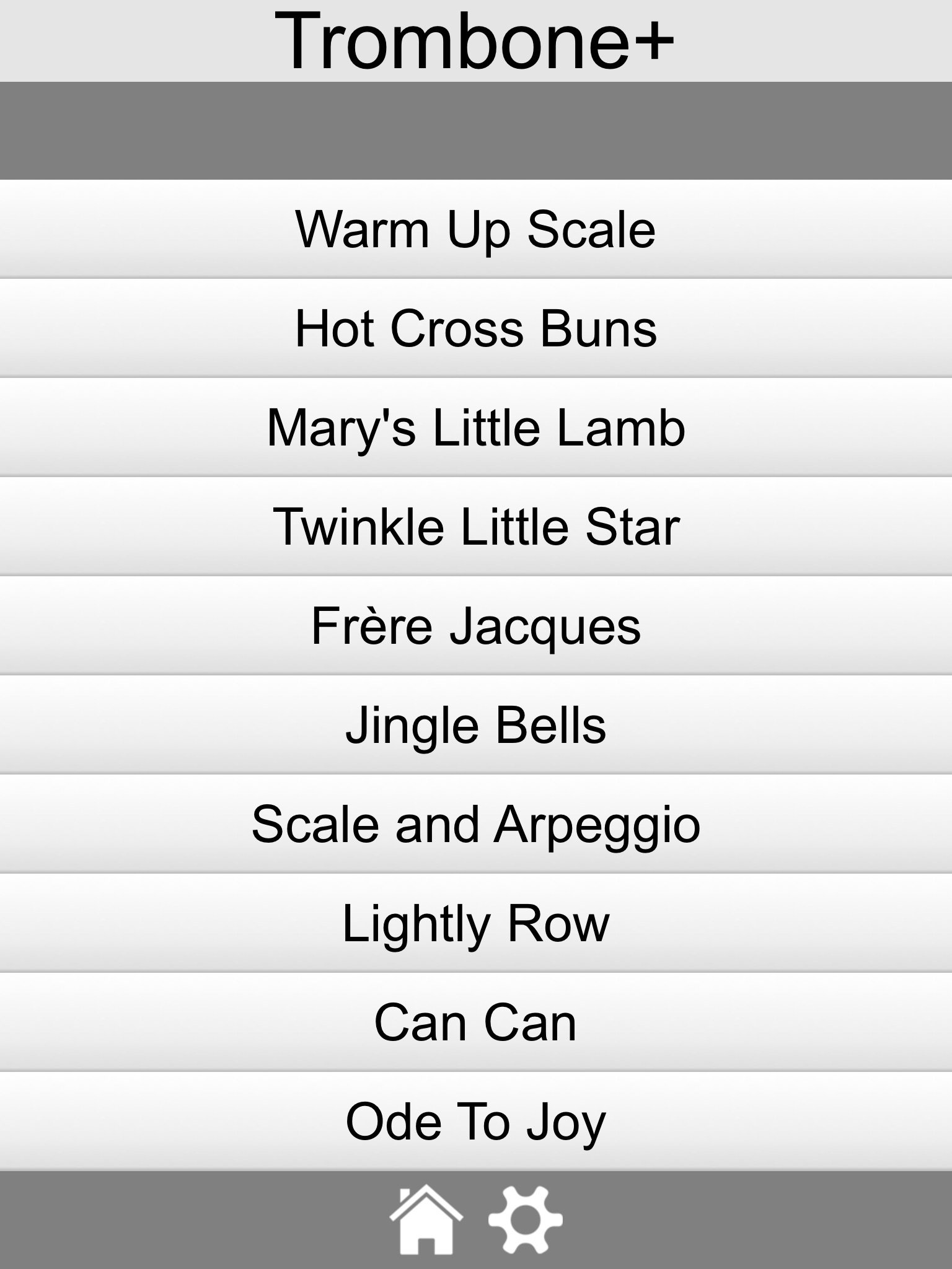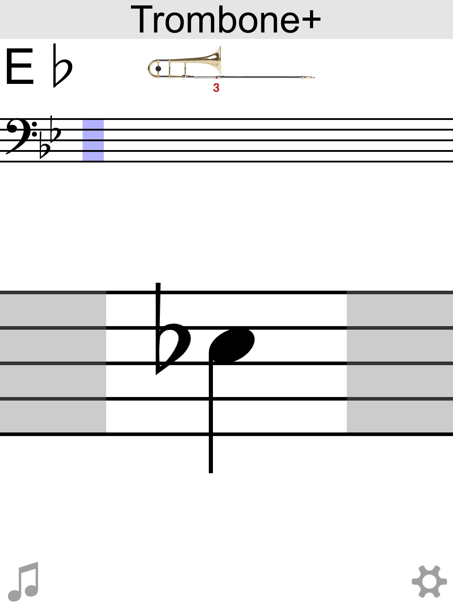 Trombone+ is an interactive fingering chart for tenor trombone. Tap the music staff to see the note, its name, and slide position, PLUS hear its sound.