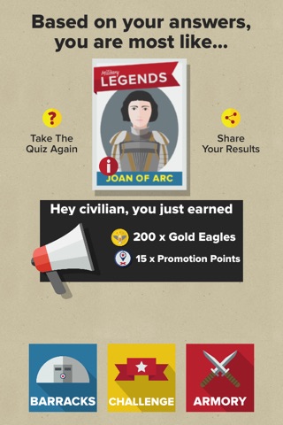 Create your civilian avatar and start earning promotions through the ranks of your branch of choice as you tackle our quizzes, campaigns, challenges, battlefield calculus, combat camera missions and more.