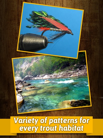 Trout Fly Fishing - Fly Tying app is specifically designed to instruct and help fishermen, it can be a great substitute for fly tyer magazine and it is free! With it you will no longer wonder how to tie fishing knots or how to tie fishing hook. You will know how to tie fishing line to a reel, different sorts of angling technics, youll know which fly tying materials you need and youll know when to fill your fly tying supplies as well as what bait to use for fishing. The most important of all is that this trout fishing app is universal. It is ideal for beginner fishermen to learn to tie flies, but it is also useful for experienced fishermen who can perhaps lean new tying techniques and be introduced to new fly patterns such as the Professor, Alexandra, Renegade, Buzzer, Spruce, Scud, Black ant, Black ghost and so on. You will find tips on water conditions in which to use flies so as to have the greatest success in trout fishing.