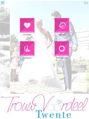 Download nu gratis de app van TrouwVoordeel Twente en profiteer direct van de vele voordelen, vind betrouwbare bedrijven voor uw trouwdag, volg de leukste evenementen ÉN maak kans op fantastische prijzen! Alles om er gegarandeerd een fantastische dag van te maken.