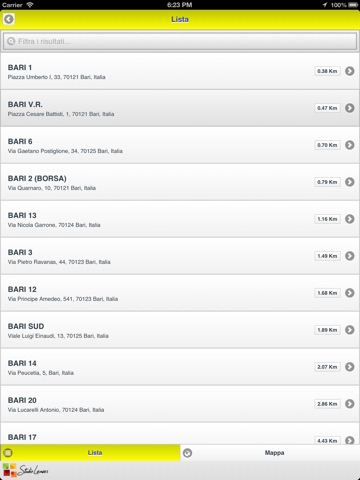 - visualizza tutti i risultati su una mappa o in base alla distanza.