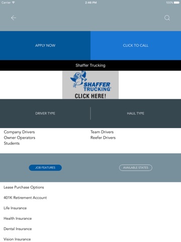 Truck Driving Jobs is the best mobile application for Company Drivers and Owner Operators to find jobs! Contacting or applying to a company is just a touch away! Research company pay, benefits, and hiring states. Search companies for jobs that meet your criteria and skills.
