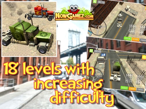 We present to you this free truck parking 3D simulator game which needs your skills to drive the stunning scenery levels! This high detailed game provides you the game you were waiting for. You can drive 18 levels with increasing difficulty and you can choose to drive 3 different trucks with there own paintings and colors.