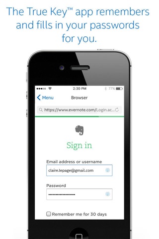 Enhance your personal security – Password Generator will create strong 8-30 character passwords for you to use on any account such as banking, email or credit card accounts, and will autofill the password for you when you’re logged into True Key so you don’t have to worry about forgetting it.
