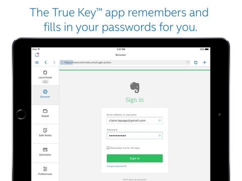 Save yourself the frustration – True Key will remember your passwords for you, automatically filling in your account info on apps and websites so you don’t have to “forgot password” ever again. True Key will also generate secure passwords for your most important accounts. Your True Key account automatically syncs across all your devices, including desktop and mobile devices, so you’ll have access to your passwords everywhere you go!