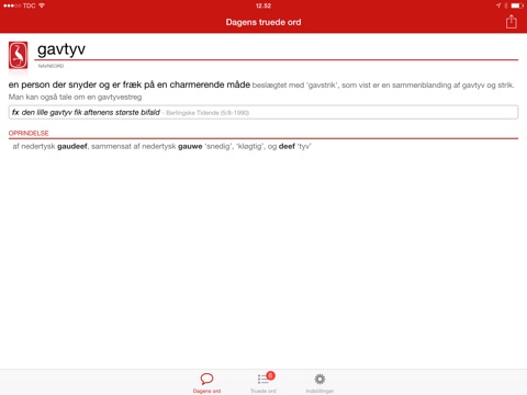 The application provides a list of danish words, that are about to be removed from the danish language. To prevent the words from being removed we will have to start using these words again. Therefore this app will suggest an endangered word every day, that you can use during the day.