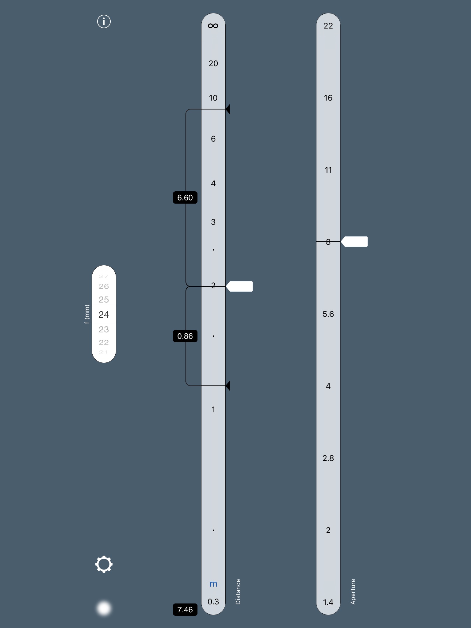 Theres no need for long descriptions here — the app is free, so just play around with it. Youll find youll never want to go back to the old ways of calculating depth of field.