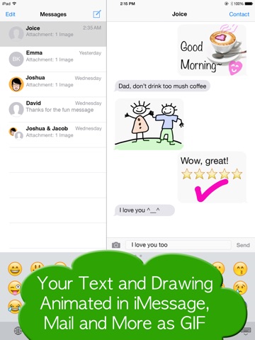 - Drawing will be replayed as animated GIF or Video in iMessage, Mail or Facebook