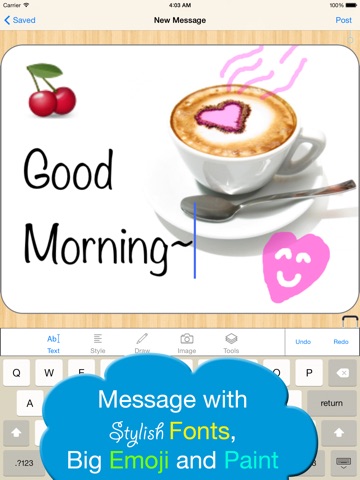 - Create your own unique messages with powerful Text/Drawing/Image Tools.