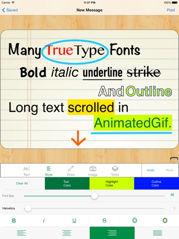 Send stylish and authentic animated message with rich text and hand drawing.
