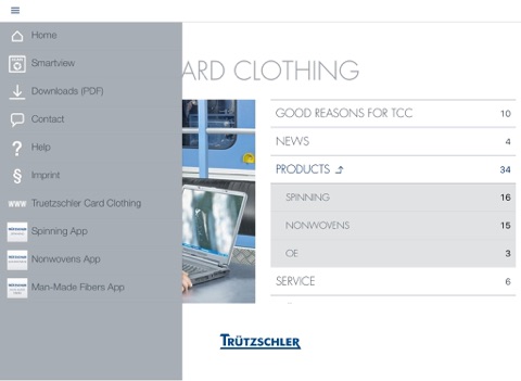 TRÜTZSCHLER CARD CLOTHING has successfully manufactured high performance clothing for cards and roller cards for many years. The TRÜTZSCHLER CARD CLOTHING App provides customers with compact information on technical product innovations and digital options, e.g.: