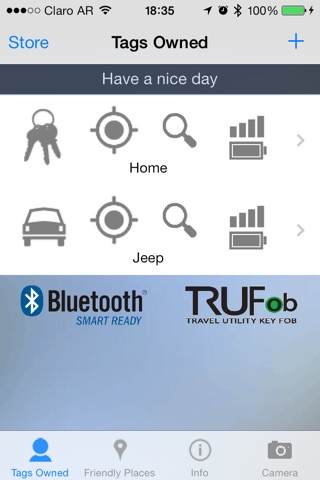 This version offers all you need: Camera Remote Control, no tag restrictions, shows the device name, signal strengh (RSSI) and battery level.