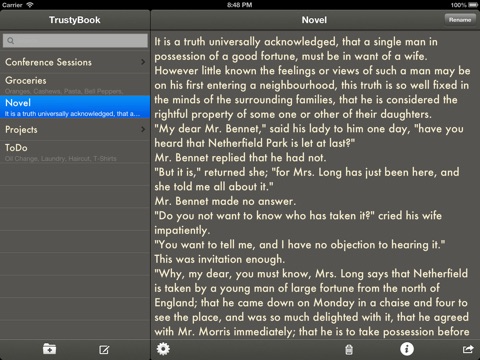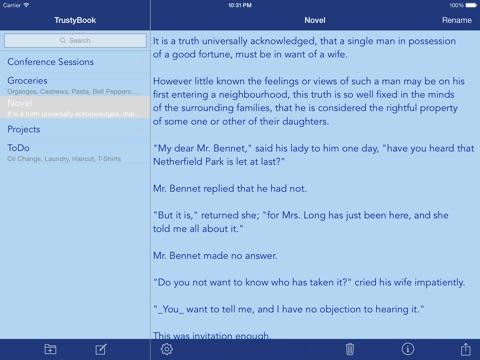 — Name your notes anything you like. — TrustyBook lets you name your notes. So instead of the first line of your note being the name of the note, you can decide for yourself.
