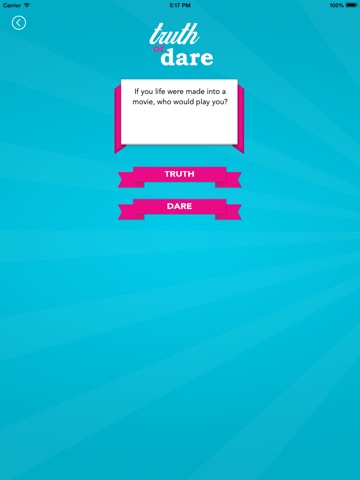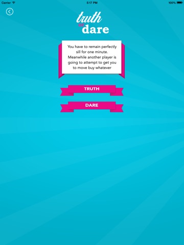 The number one Truth or Dare games for iOS ! The application contains more then 400+ truths and dares. This application is created for all possible occasions, parties, dinner parties, birthday parties you name it. It works for two players but is unlimited to number of simultaneous players.
