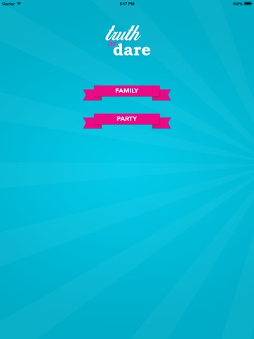 This application is set up for two different modes, family mode that contains truth and dares more suited for occasions with players bellow the age of 18, and party mode with all in, full blown truths and dares for those over 18.