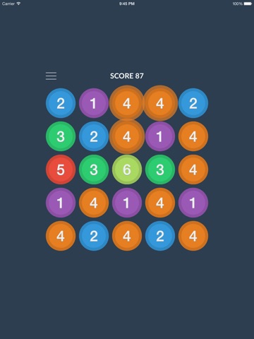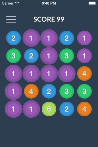 Tap the adjacent circles with same number and color, and they will pop up.
