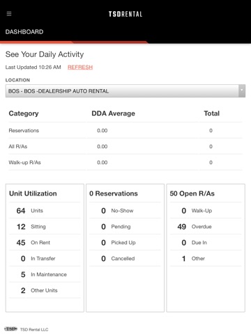 Securely manage your fleet with the TSDRENTAL mobile app. Just like TSD online, sign in with your online credentials and manage units and returns on your iOS device. Youll enjoy the features of TSDRENTAL on the go!