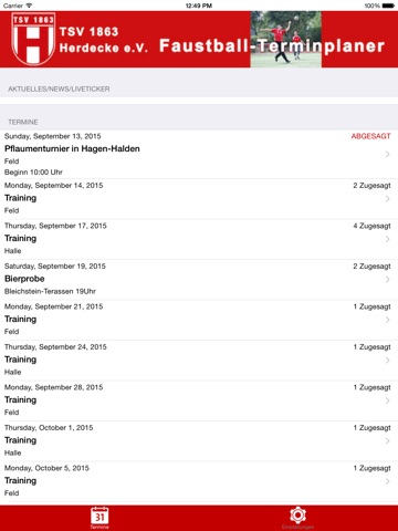 Der TSV-Herdecke-Faustball-Planer zeigt alle kommenden Termine für unsere Abteilung und ermöglicht es registrierten Benutzern sich für diese an- oder abzumelden.