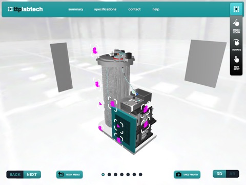 Using pinch zoom in and out or you can spin the 3D model around or select a hotspot to see a list of features.