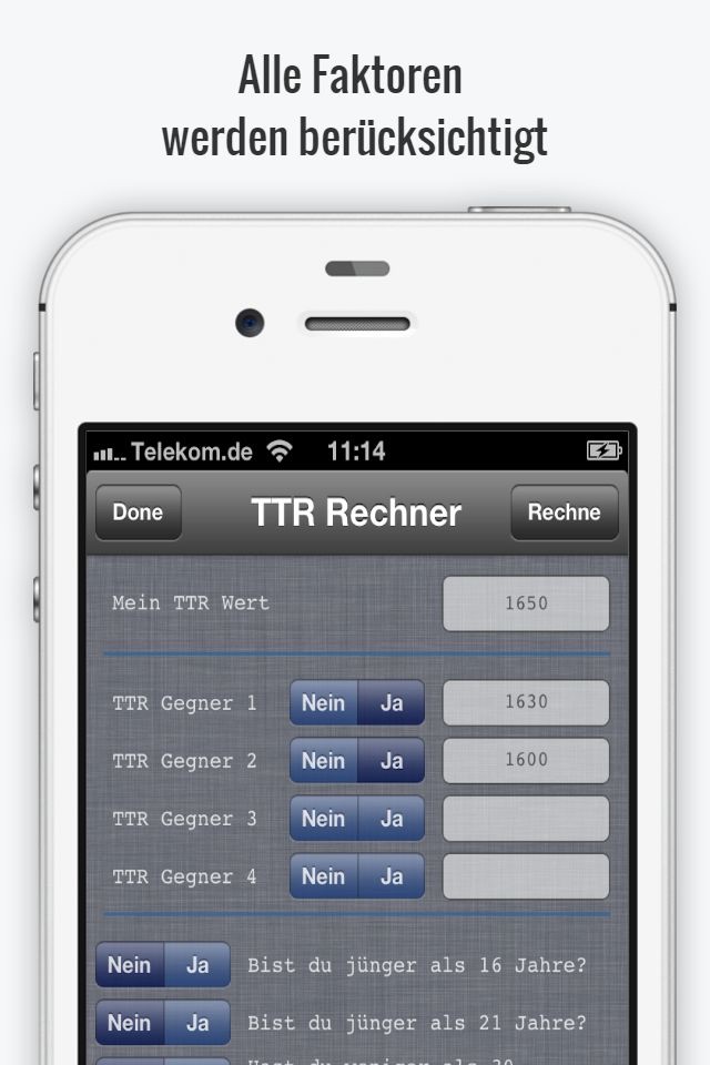 Die TTR-Rechner App ermittelt kostenlos dein Tischtennis-Rating (TTR).