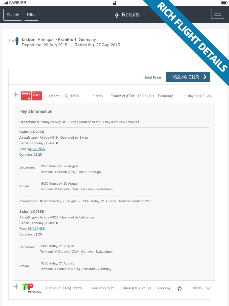 Supports advanced search parameters and filters to input traveller preferences and speed up booking.