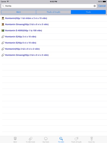 ● Từ điển thuốc: Tổng hợp gần 60000 loại thuốc khác nhau. Từ điển thuốc được chia thành các loại khác nhau, hoặc có thể tra cứu theo tên trong mục tìm kiếm