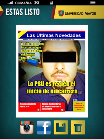 Hazte famoso con tu propia portada PSU! Sólo debes elegir una portada, un titular atractivo, poner tu foto y compartir.