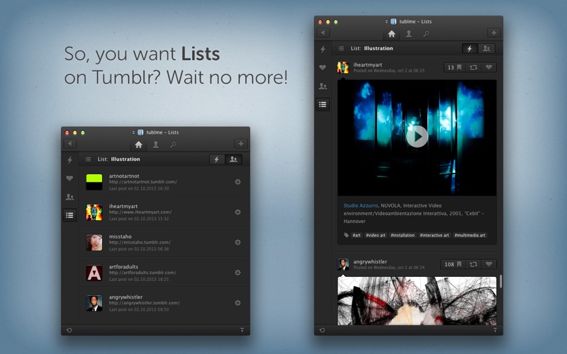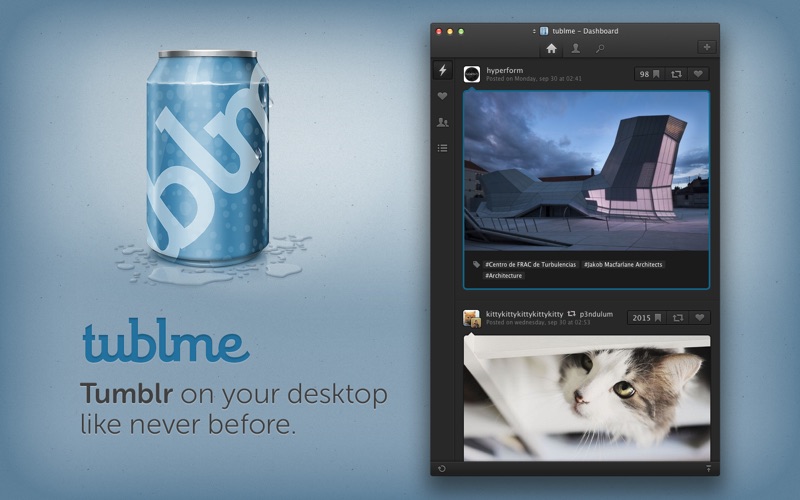 … endlich ein vernünftiger Tumblr-Client am Mac. Und auch noch in hübsch! Vieeeelen Dank an den Entwickler!